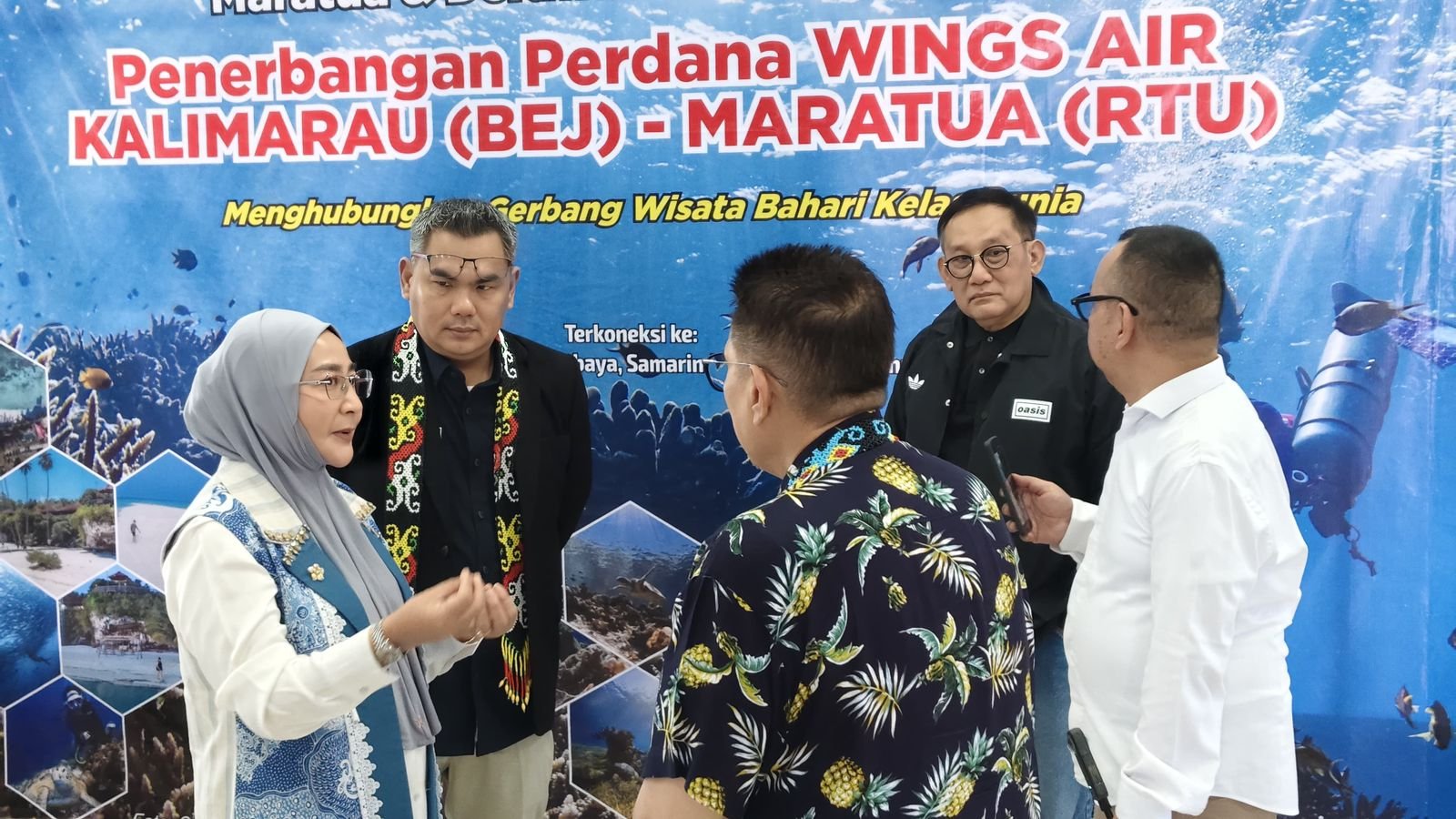 Penerbangan menggunakan pesawat ATR 72-600 ini menjadi momentum penting dalam membuka akses menuju Pulau Maratua, destinasi bahari unggulan yang dikenal dengan terumbu karang alami, kejernihan laut, serta kekayaan biota laut yang telah diakui dunia. Peresmian penerbangan berlangsung di Bandara Berau dan dihadiri sejumlah tokoh penting, di antaranya Anggota Komisi VI DPR RI Hj. Syarifah Suraidah Harum, Gubernur Kalimantan Timur H. Rudy Mas’ud, serta Bupati Berau Sri Juniarsih Mas. Hadir pula Kepala Otoritas Bandar Udara Wilayah VII Ferdinan Nurdin, Kepala Bandara Maratua Sunartopo, perwakilan manajemen Lion Group Ari Azhari, Direktur Keselamatan, Keamanan, dan Kualitas Wings Air Kapten Iyus Susianto, serta Area Manager Lion Group Kaltim–Kaltara Mohammad Helmi, bersama jajaran pimpinan daerah dan tamu undangan lainnya.